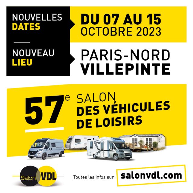 Salon VDL : du 7 au 15 octobre 2023 à Paris-Nord Villepinte 08/08/2023 Salon des Véhicules de Loisirs à Paris-Nord Villepinte 2023 Du 7 au 15 Octobre 2023 Ouvert tous les jours de 10h à 19h AU PARC DES EXPOSITIONS DE PARIS-NORD VILLEPINTE