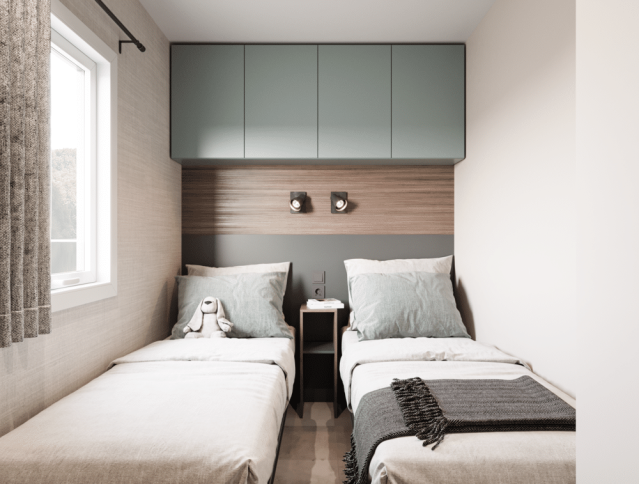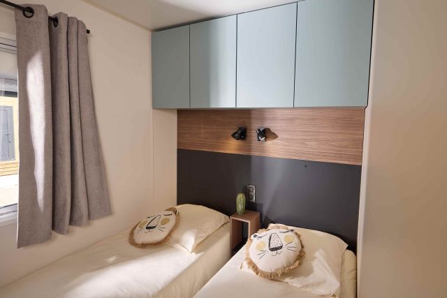 Son implantation sépare les espaces de vie et les espaces nuit : à chacun sa tranquillité pour les temps forts de la journée. Dans chaque pièce retrouvez du rangement : un grand placard avec penderie dans le séjour, des meubles ponts dans toutes les chambres, avec en prime, un véritable espace dressing dans la chambre parentale ! L'ELYA 40.2 PANO est un mobil home conçu et aménagé pour sublimer vos vacances !