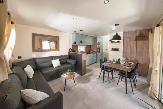 Avec le mobil home ELYA 40.2 PANO, la convivialité est au rendez-vous ! Retrouvez-vous en famille ou entre amis pour des moments de détente, dans un espace tout confort.