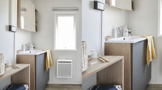 - Equipements de série : bardage vinyle, Menuiseries extérieures anthracite, sèche serviette dans la SDB, réfrigérateur, Four, volets roulants chambres, lit sur vérin, canapé résidentiel convertible, convecteurs toutes pièces, hotte